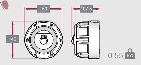 | Size mm (with back | 150 x 146 x 107.5 | |
