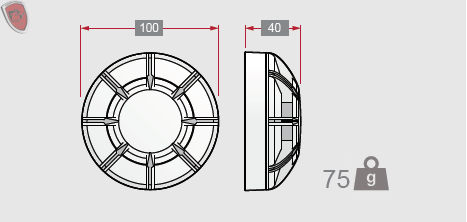 The Fyreye MKII Rate of Rise heat detector (MKII-AHR) uses a thermistor arrangement to sense a quick rise in temperature and also a final threshold temperature of 57°C. The Fyreye fixed heat detector (MKII-AHF) has a single thermistor arrangement that gives an alarm at a temperature of 57°C, where the MKII-AHF/CS90 gives an alarm above 86°C.